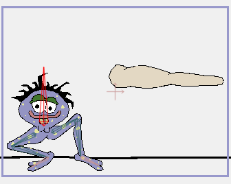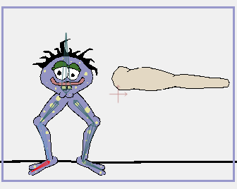 Выберите слой "Frank w/Skeleton". Блокировка кости часто используется для того, чтобы ноги персонажа не двигались при анимации. Если это сделать, Moho должна будет передвигать ноги персонажа самостоятельно. Блокировка также помогает использовать ограничения поворота углов, чтобы колени нашего персонажа не выгибались назад. Выделите левую голень Фрэнка, как показано ниже: