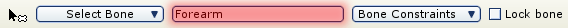 Нечто подобное мы сделаем также со второй маленькой костью под верхней частью руки. Выберите эту кость и также выберите "Forearm" в выпадающем списке управления углом кости (angle control bone), но в этот раз установите значение -0.5.